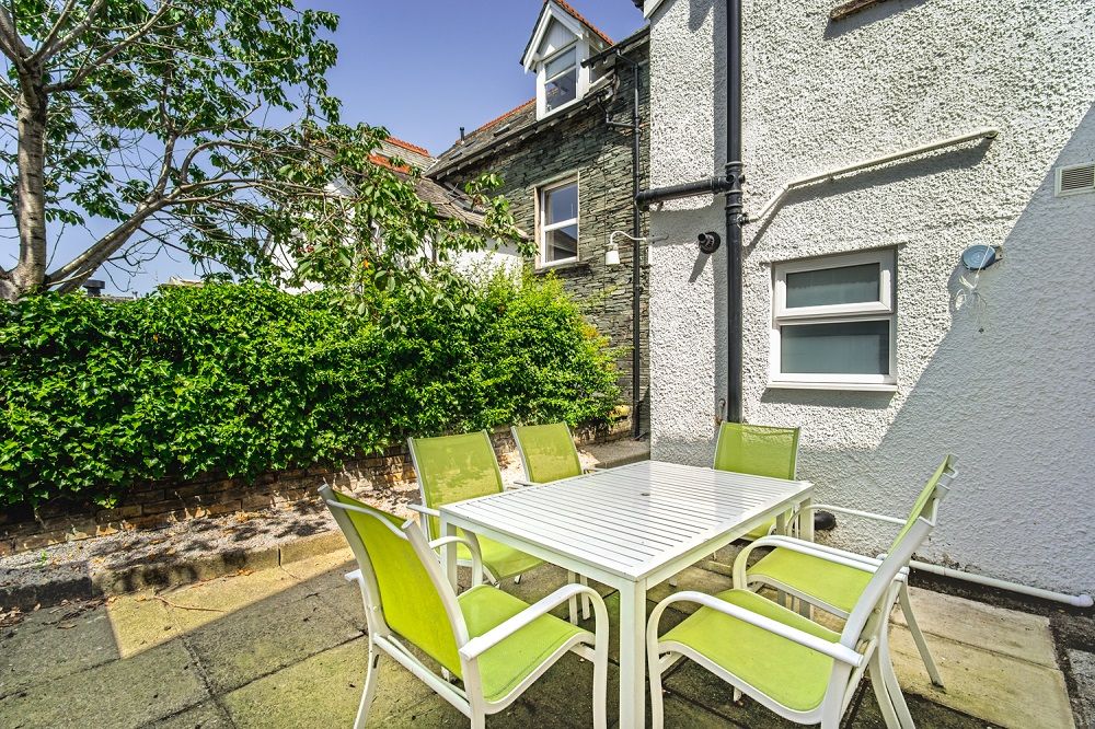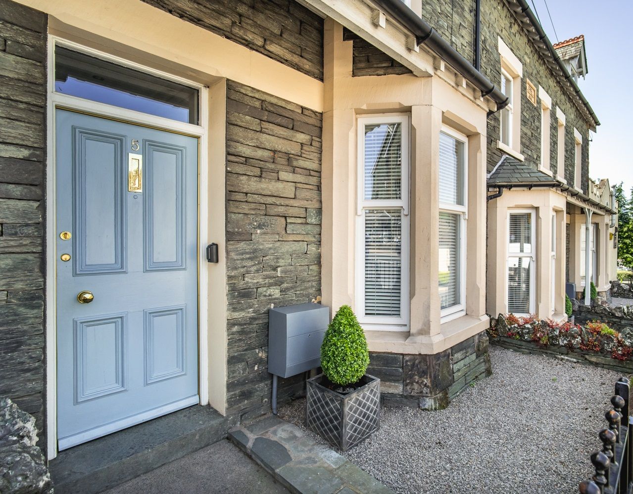Number Five The Townhouses accommodates up to eight adults, in three double or king bedrooms and one twin bedroom, over three floors. Rustic bench and vintage metal seating are provided in the kitchen, which is finished to high specification in timber. Number Five retains the turn-of-the-century blue and red hall floor tiles and some of the period bedroom fireplaces (decorative only). A log-burning stove offers cosy warmth in the living area. Guests benefit from a family bathroom and a further shower room, with the latter at ground level. One bedroom is also at ground floor level for those who prefer to avoid stairs. A twin room is available on the second floor on request. Guests at Number Five benefit from a secluded outdoor area with seating to relax at the end of a day exploring the fells, together with lockable outdoor storage and useful gated fenced perimeter.