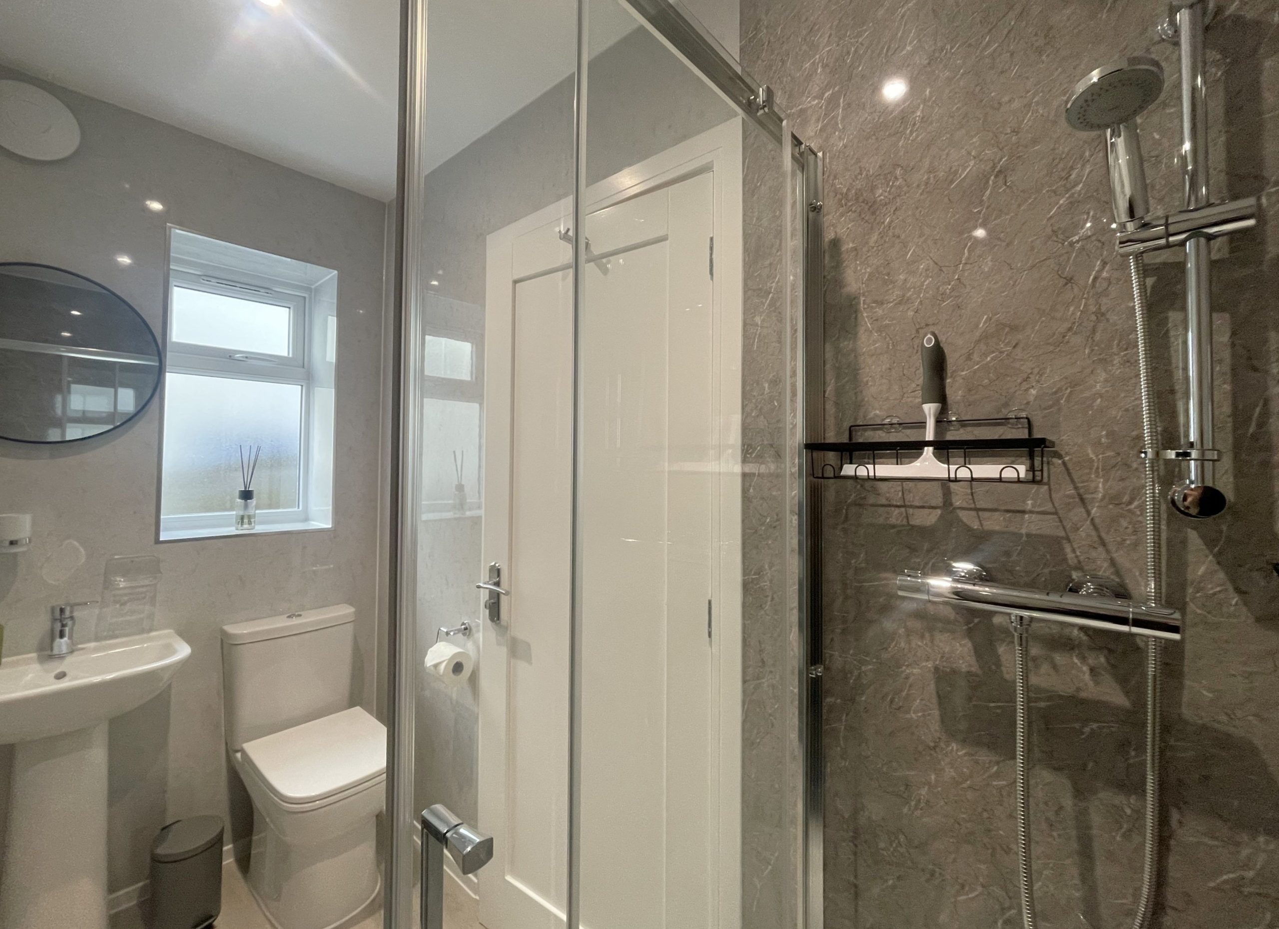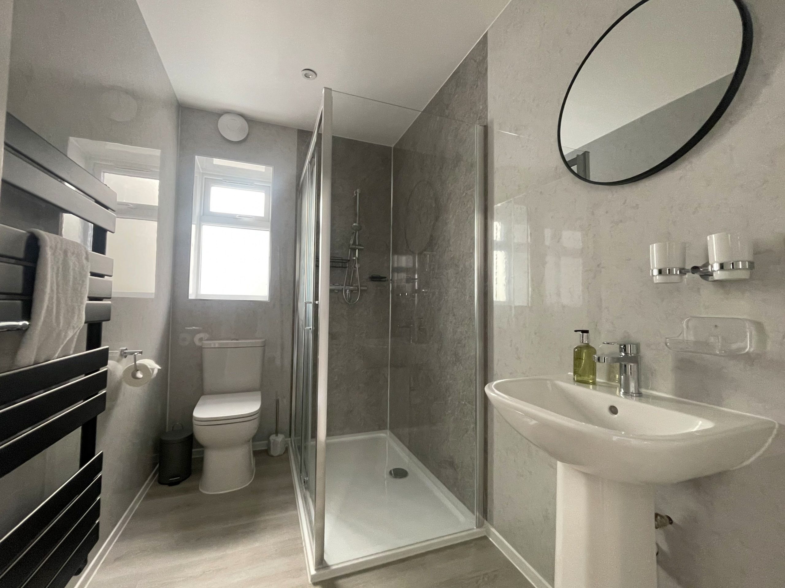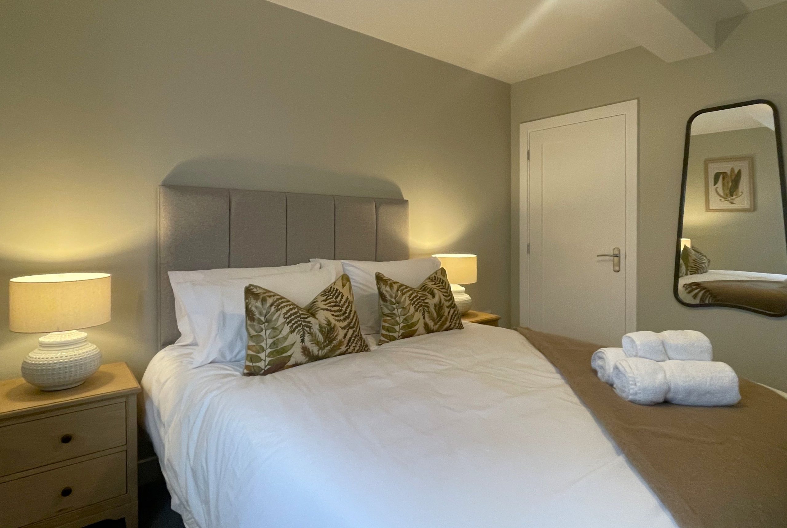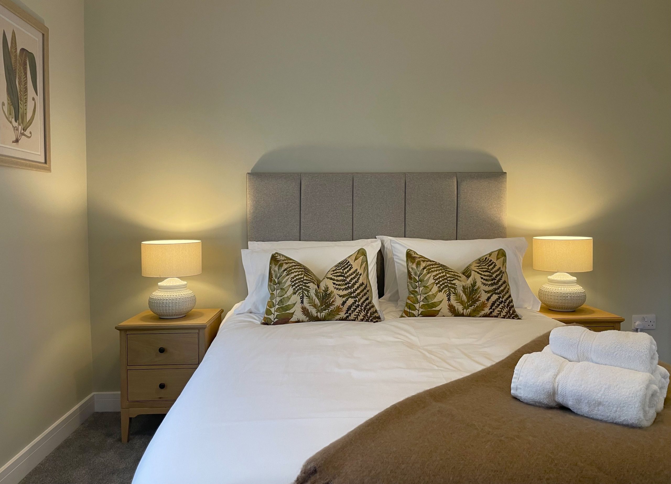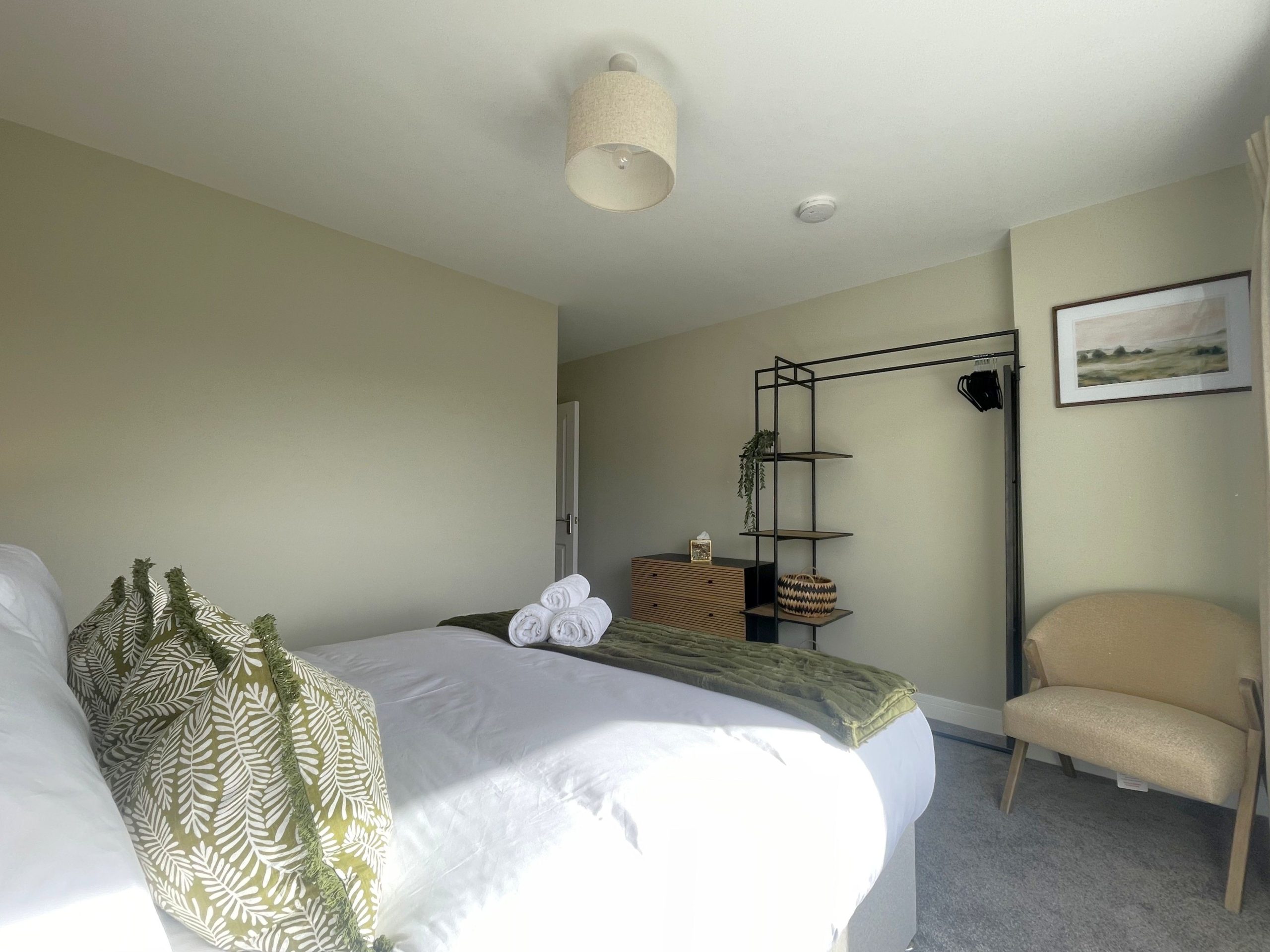 There are two bedrooms downstairs. Both are king rooms with en-suite shower rooms comprising of WC, sink, shower, and heated towel rails. Both bedrooms have ample storage, and the main bedroom has views across the fields and over to the fells. Not a view you wake up to every morning, but you certainly can at Easedale!