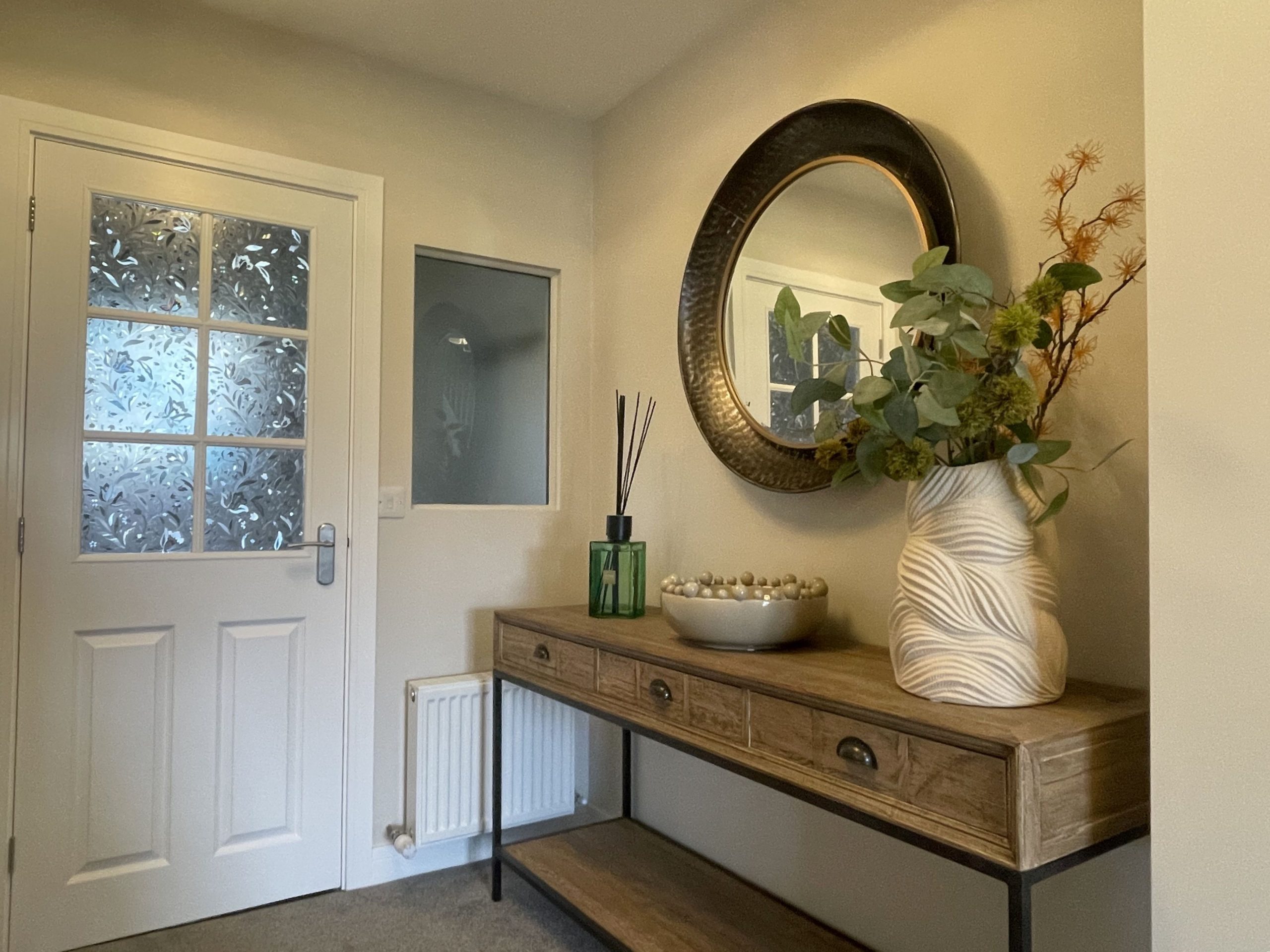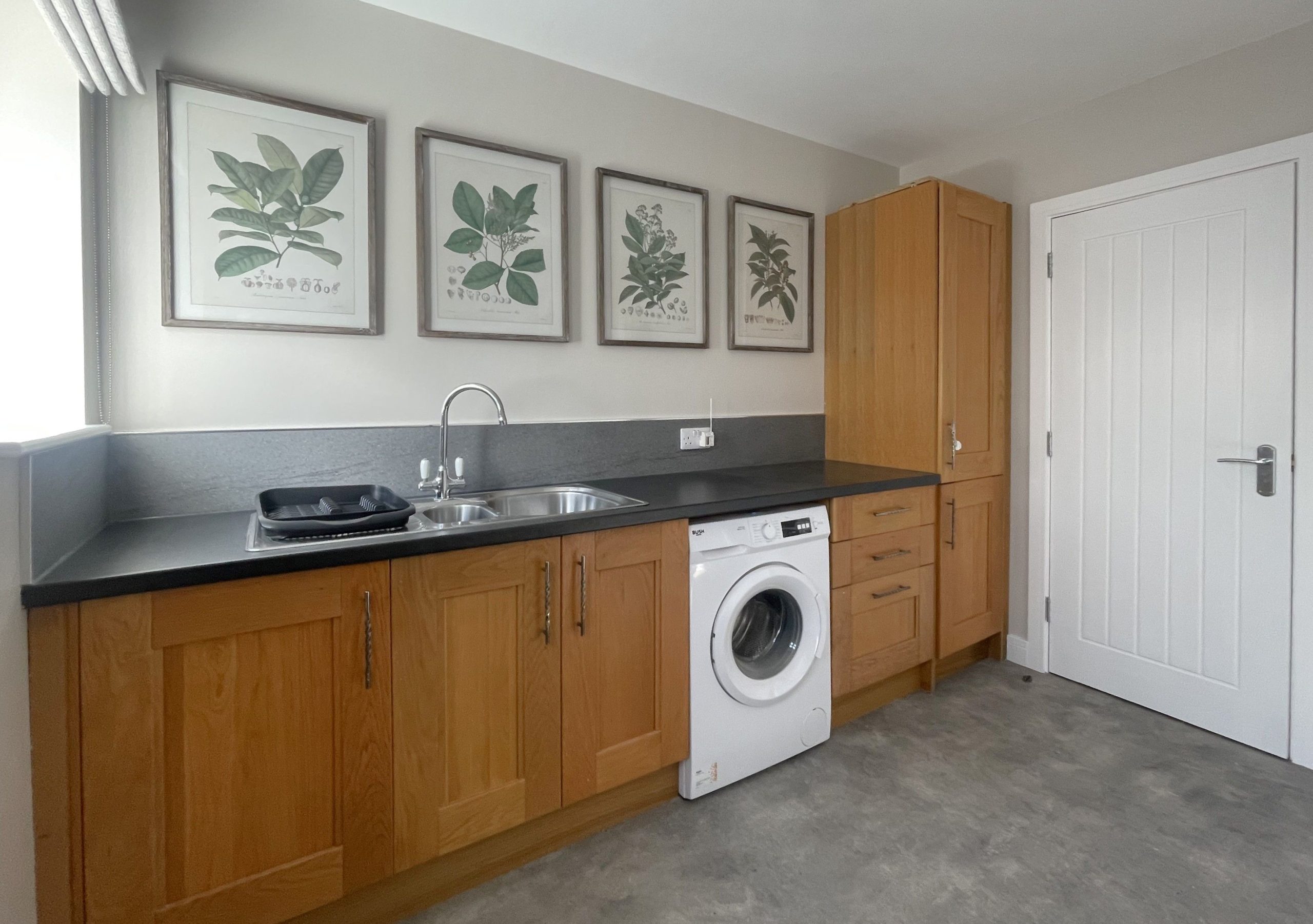 Further down the hallway is a handy utility room, where you’ll find a sink and washing machine. There are plenty of hooks for wet coats, and a seat for taking off muddy boots! This can be accessed from the side of the house, handy if you’ve been on a particularly wet or muddy walk! There is also access to the garage via this room.
