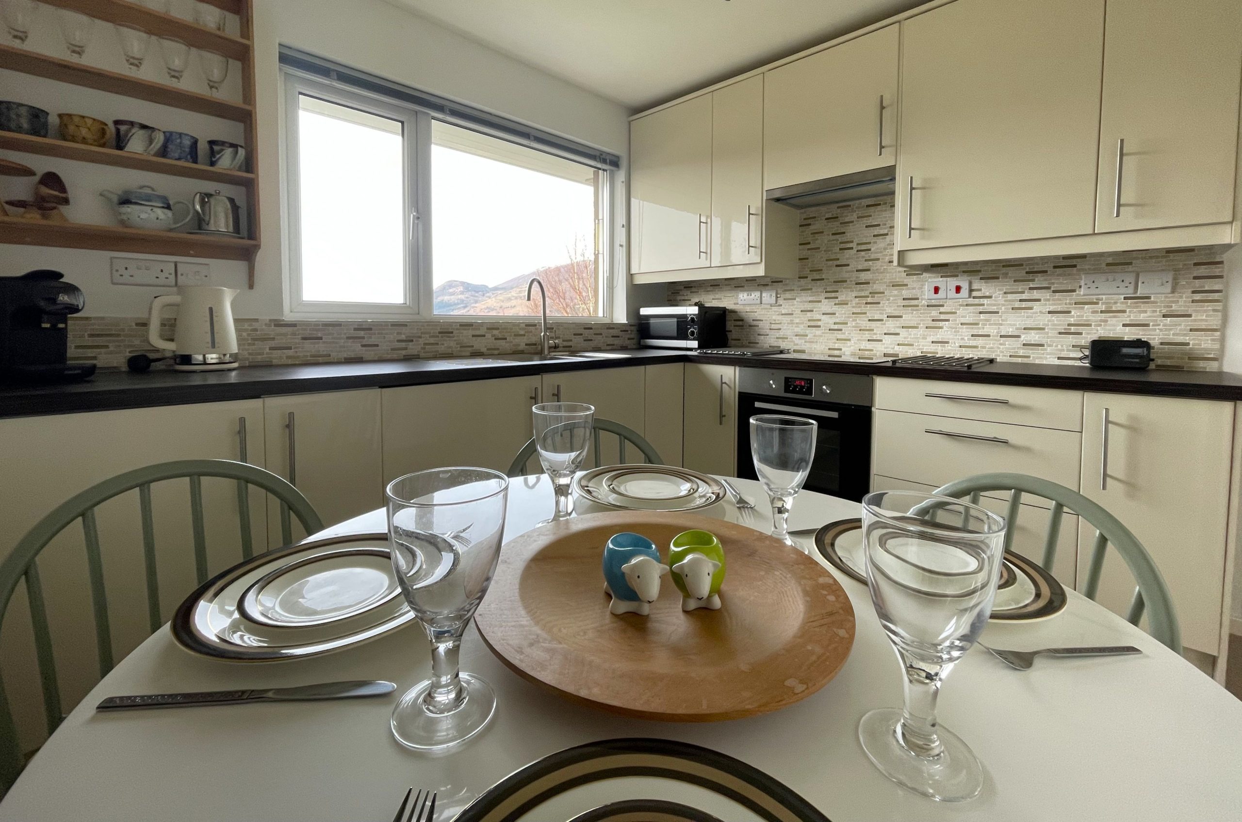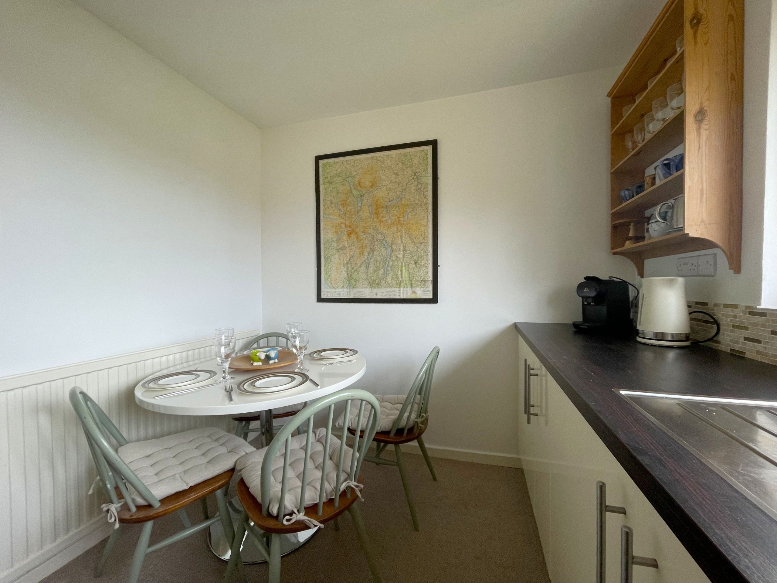 In the separate kitchen, you'll find everything you need to enjoy a home-cooked meal in your self-catering accommodation, including an oven, induction hob, and other appliances. For added luxury, Manesty View boasts a L'Or Coffee Machine. We'll take a latte, please! Here, you'll also find the washing machine and large fridge, as well as the dining table, where you can plan the next day's adventure.