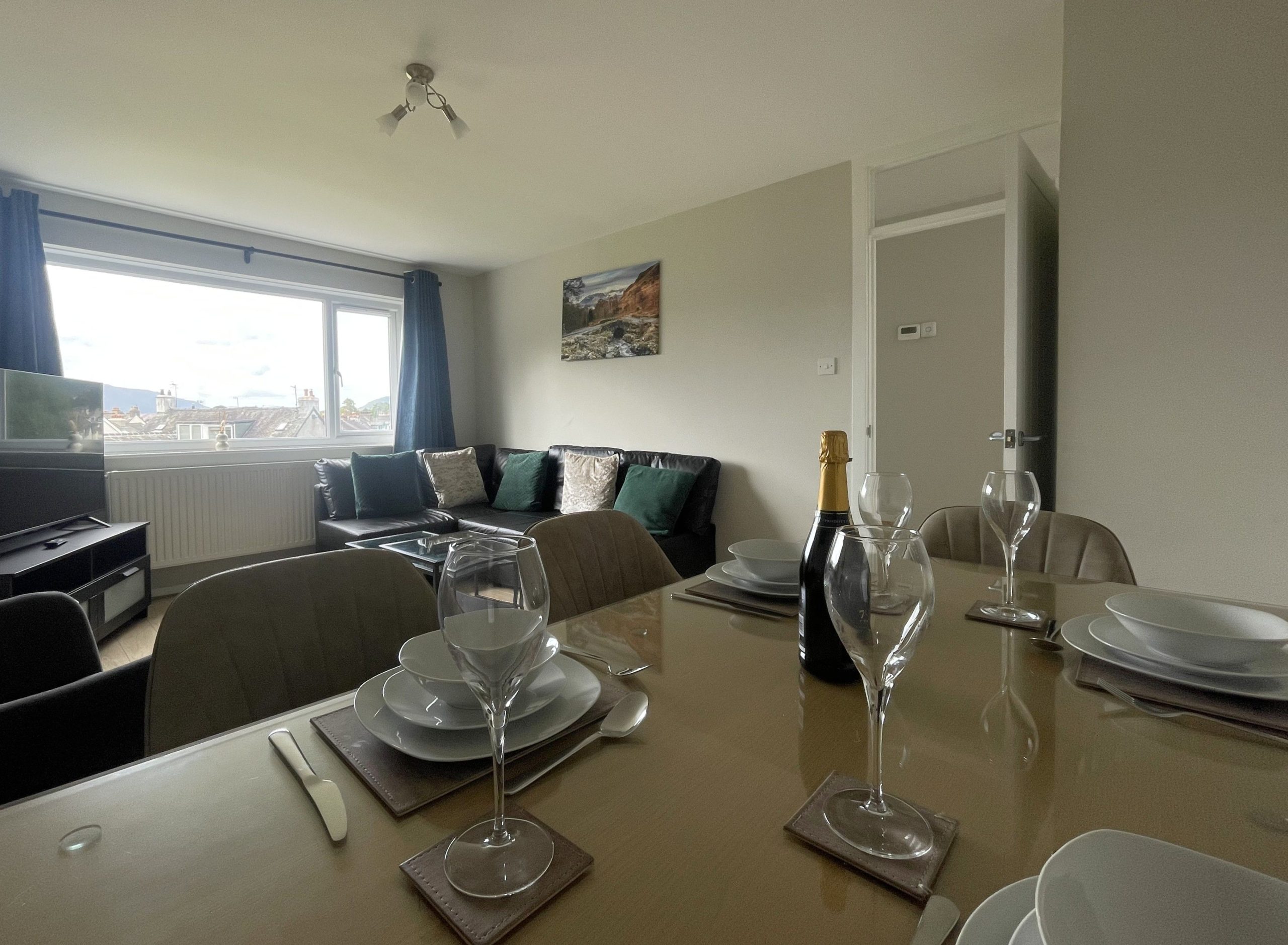 The spacious living and dining room provide a lovely space to unwind after a day of adventures. With a comfy corner sofa, armchair and coffee table that surround the Smart TV, it is a lovely space to chill out in whilst enjoying a good film. Views from the living room take in Keswick and the surrounding fells.