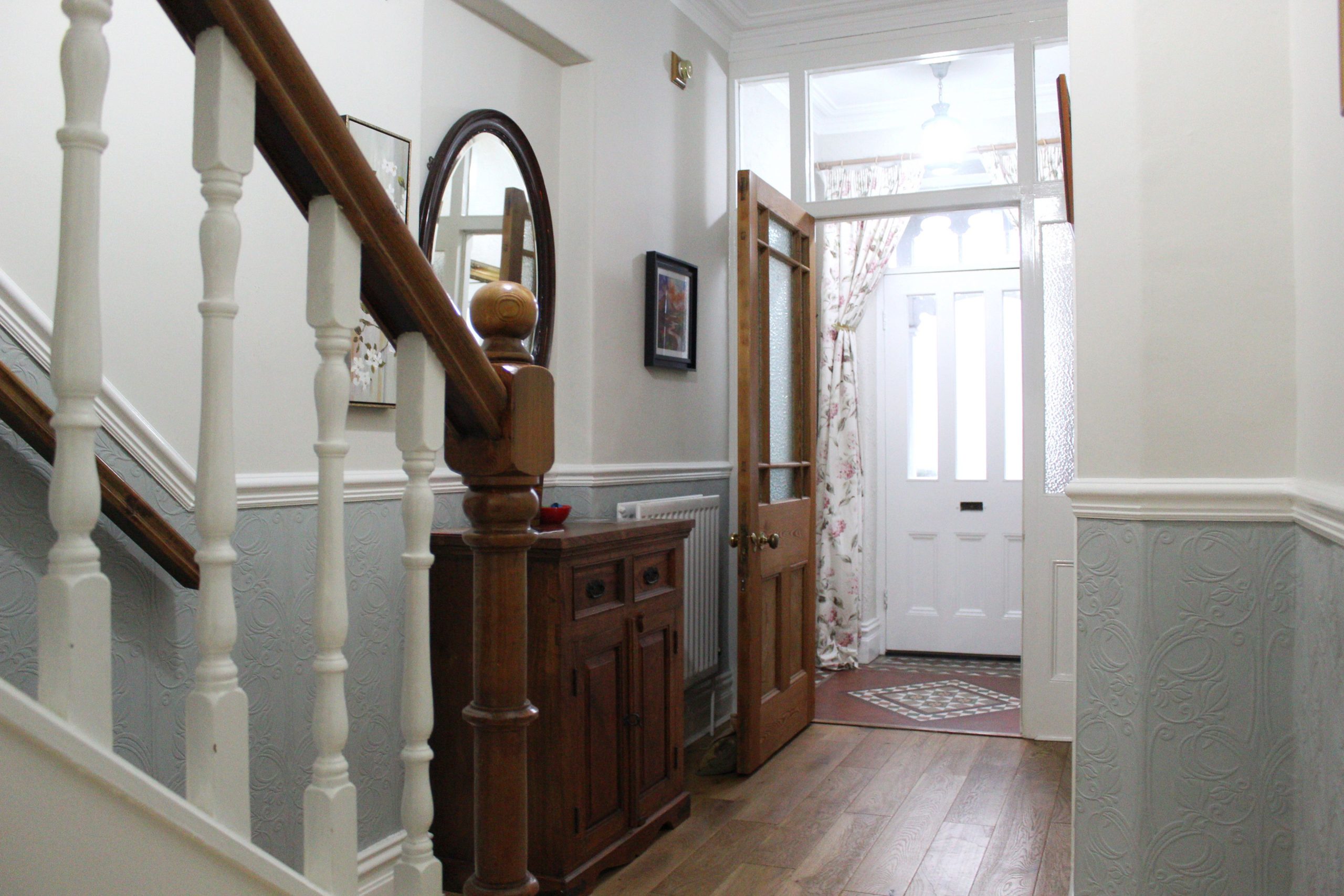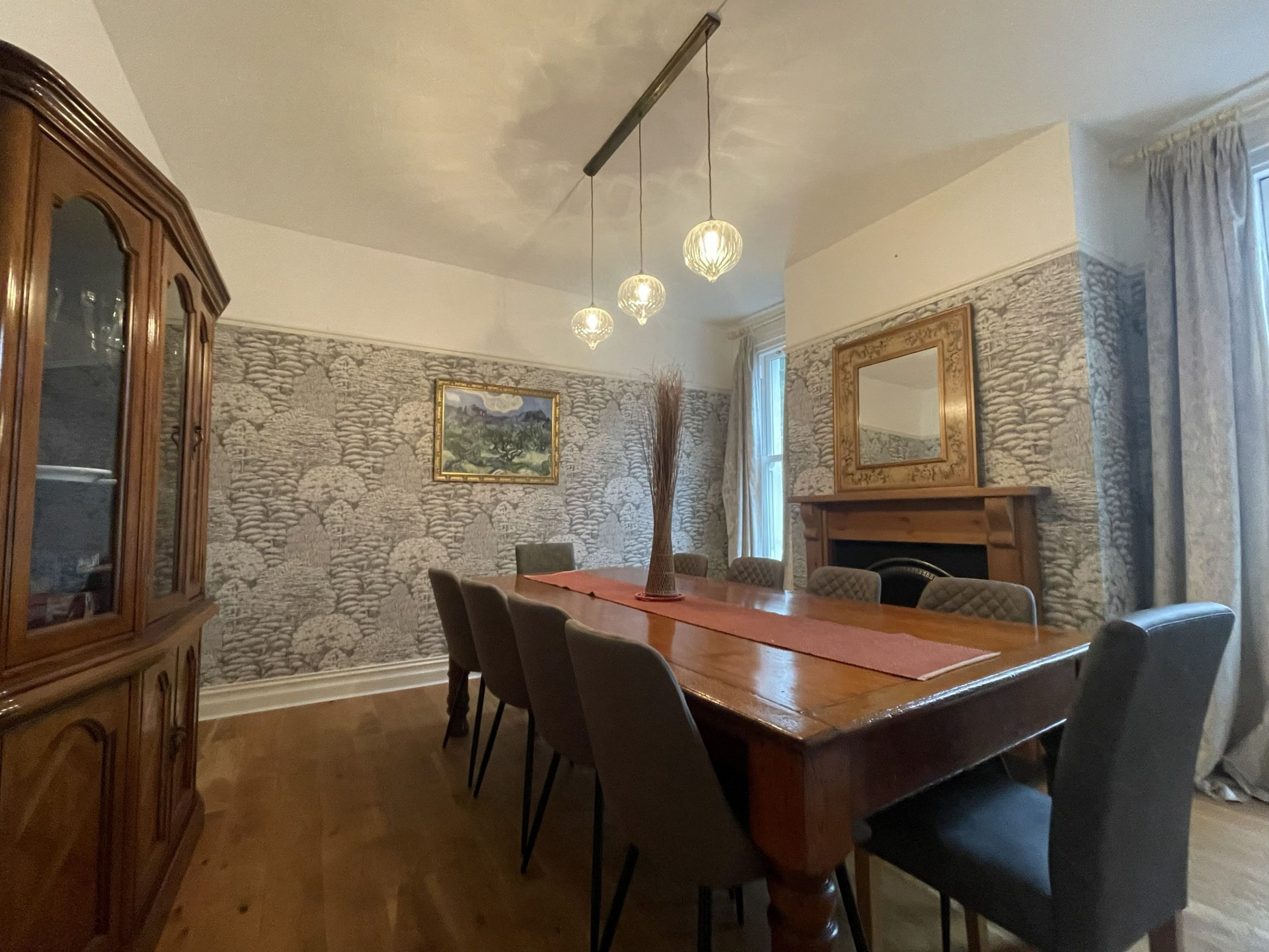 When you enter Sunnycroft, you are welcomed into an entrance hall with solid wood flooring. Just off the entrance hall is the living area, with ample seating and comfy sofas where you can curl up by the log-burner and watch TV after a day of exploring. Next to the living room is a dining room with a large dining table that comfortably seats 10 people. There is also a cabinet with board games to keep everyone entertained.