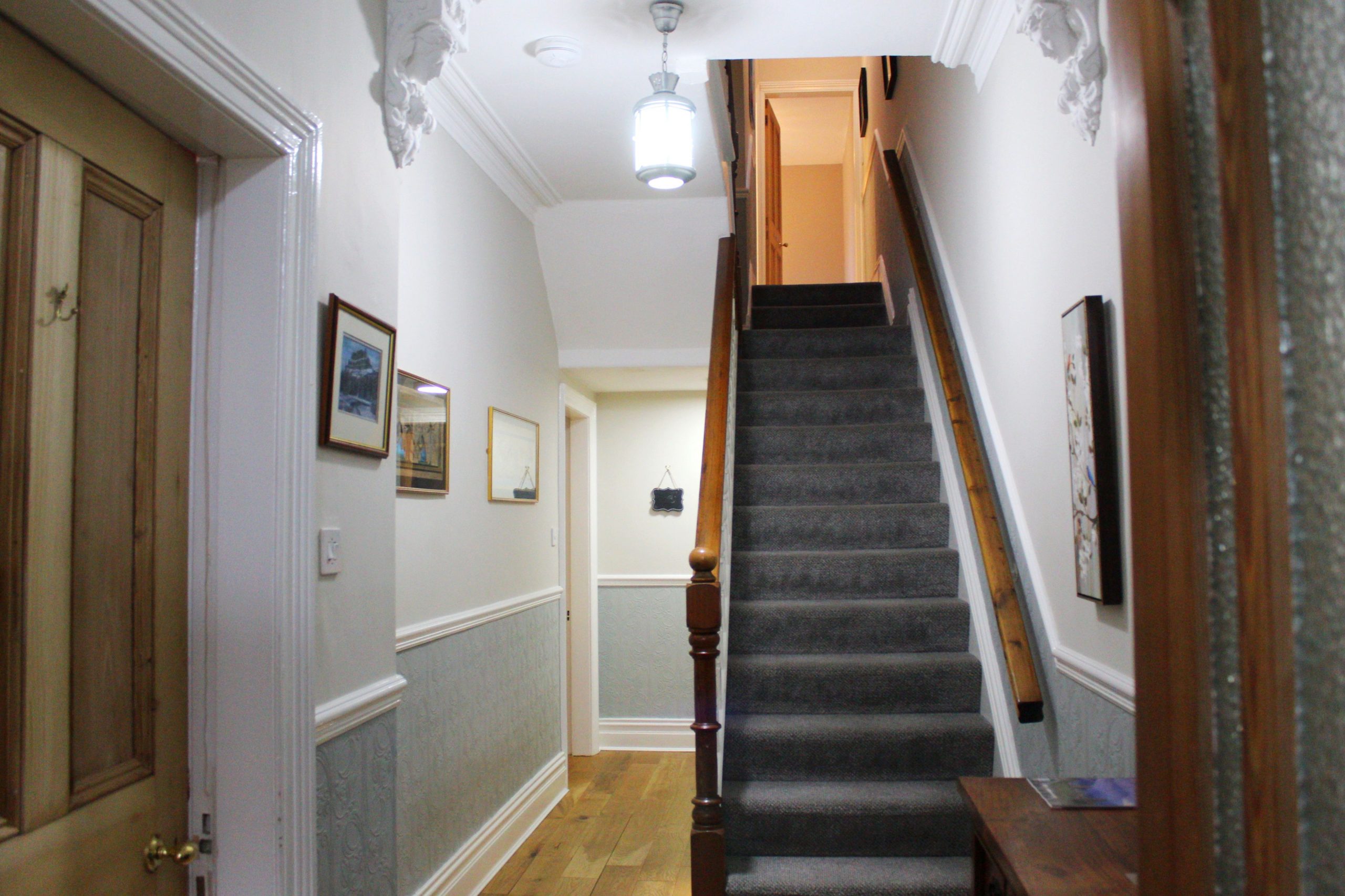 The private, enclosed outdoor area has an elevated rear garden with a large wooden table and seating, perfect for summer nights. There are also bike rails and a secure locked shed for bikes or outdoor equipment.