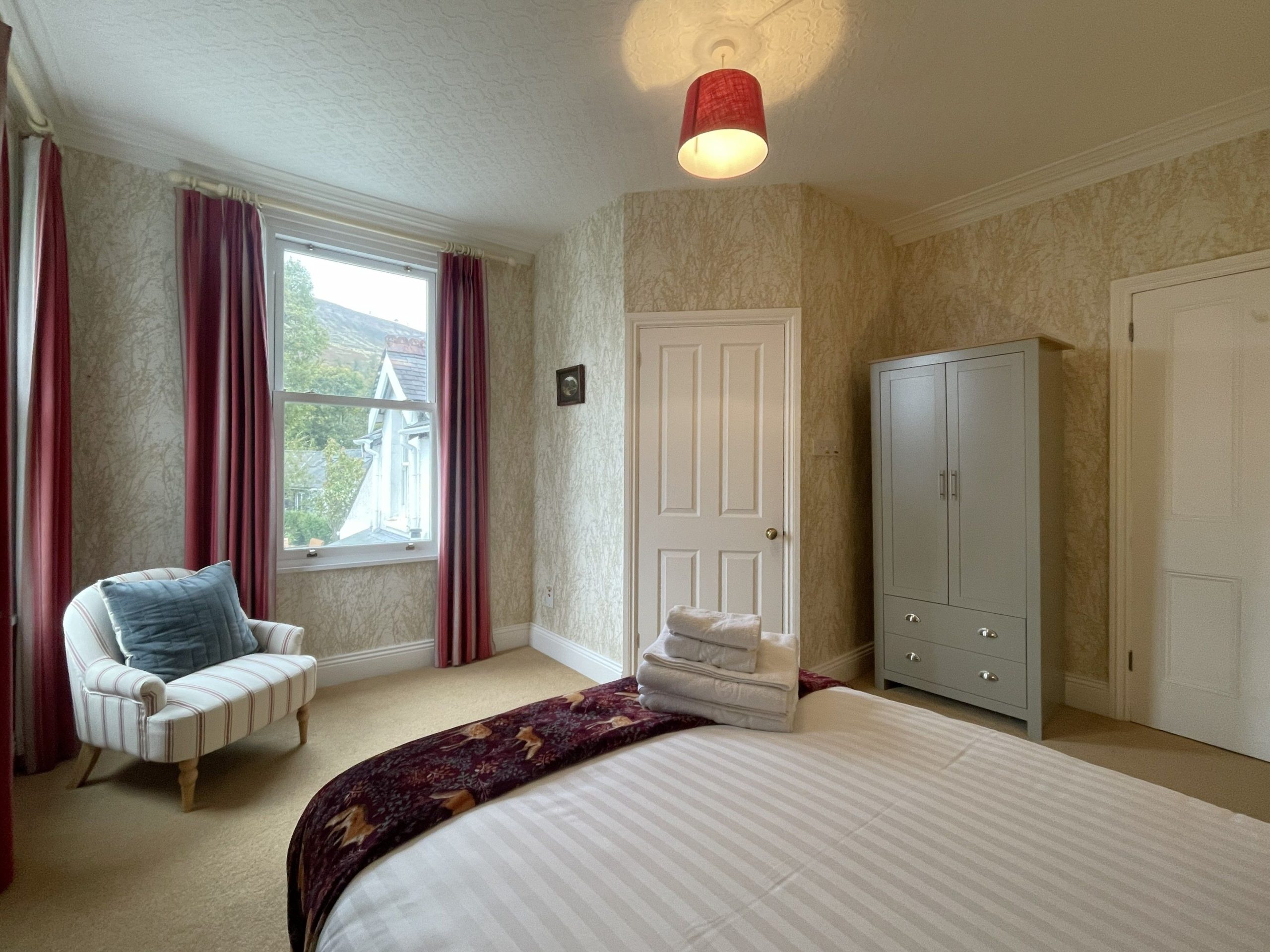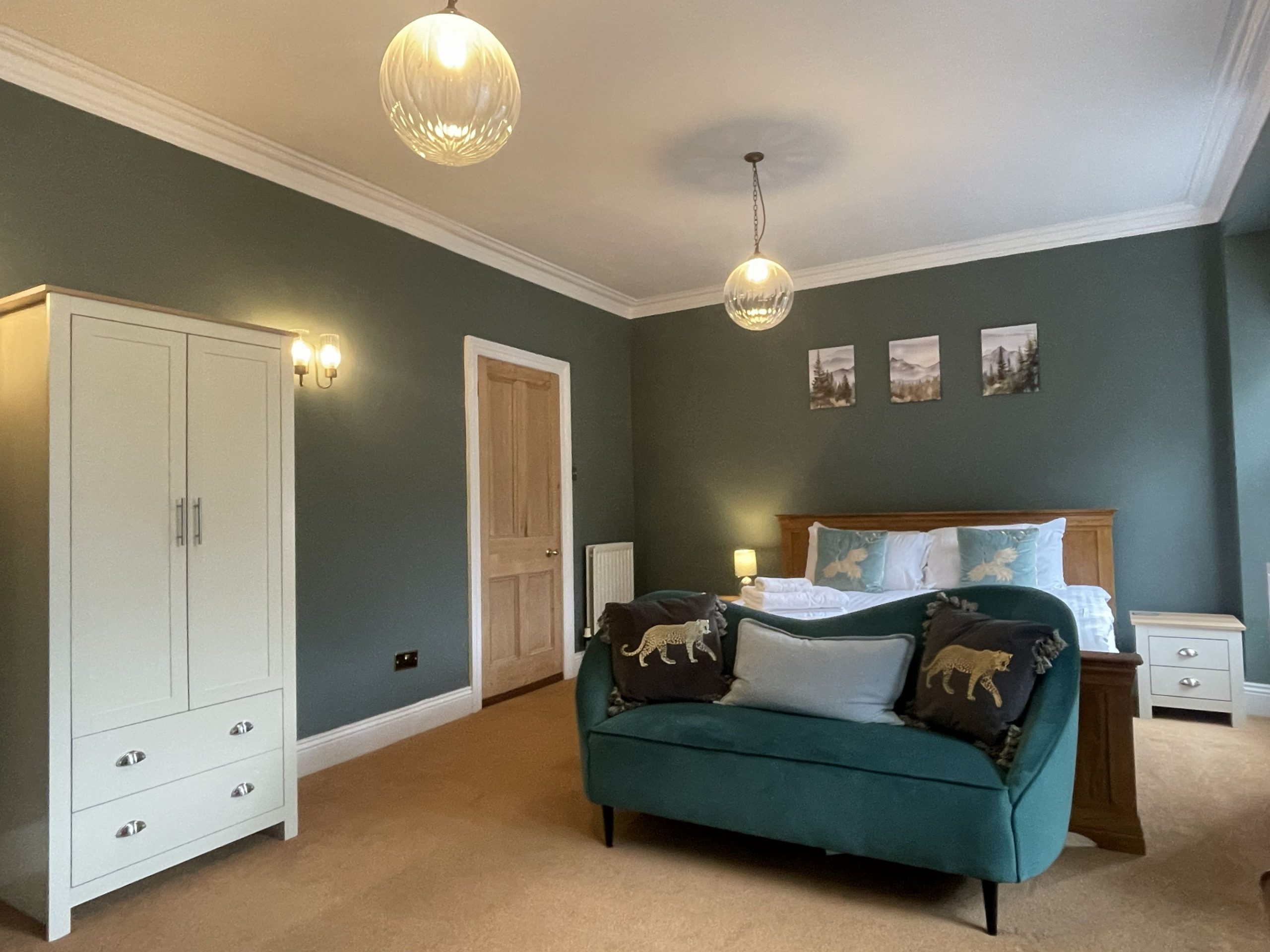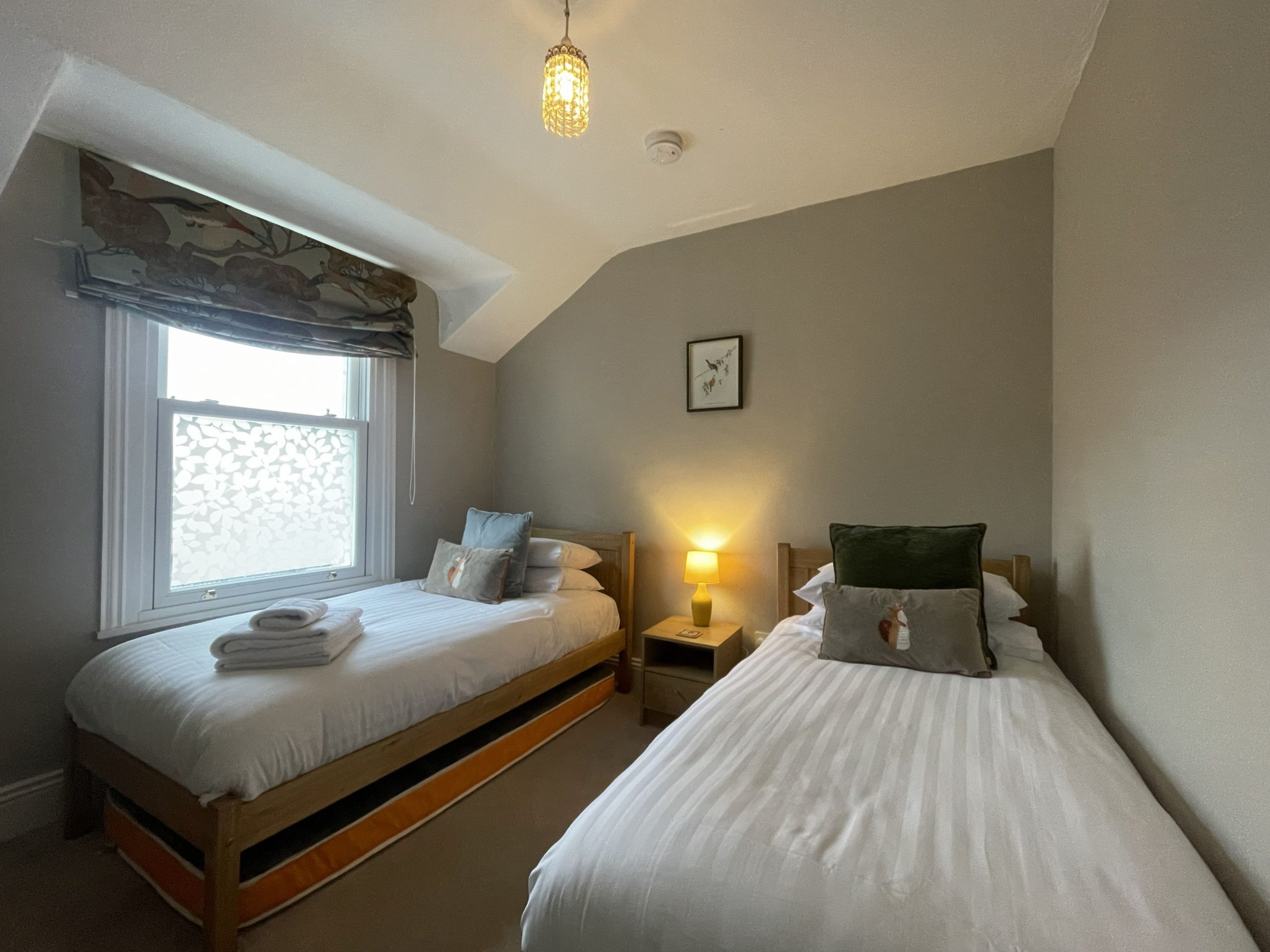 Moving up to the first floor there is a twin bedroom, a shower room with WC and sink, a spacious double bedroom with en-suite shower room, WC and sink. Also on the first floor is the largest bedroom featuring a superking bed, sofa, TV, table and chairs. The second floor features another twin bedroom, the family bathroom with shower over bath, WC and sink and the final bedroom has a king-sized bed with en-suite shower room and WC.